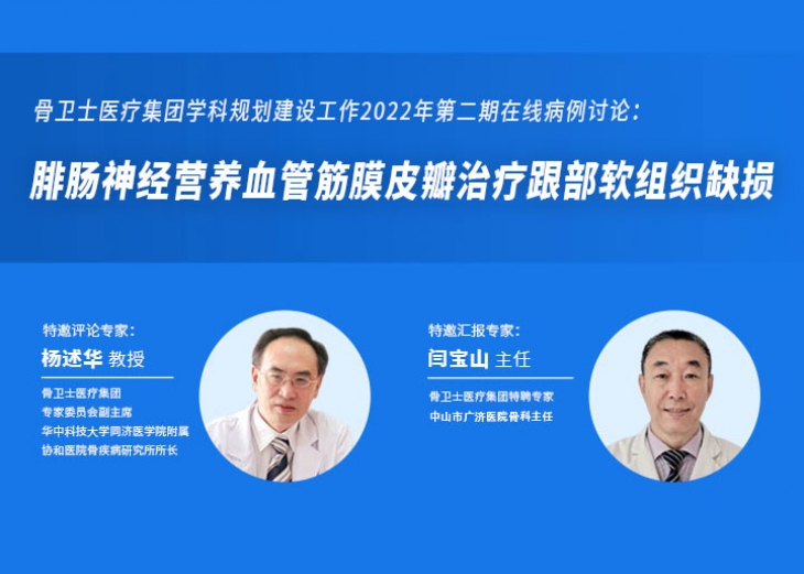 骨卫士医疗集团学科规划建设工作——2022年第二期在线病例讨论会将于4月28日晚20:00-21:00在线开展,围绕腓肠神经营养血管筋膜皮瓣治疗跟部软组织缺损相关问题进行探讨。本期病例讨论会将邀请骨...