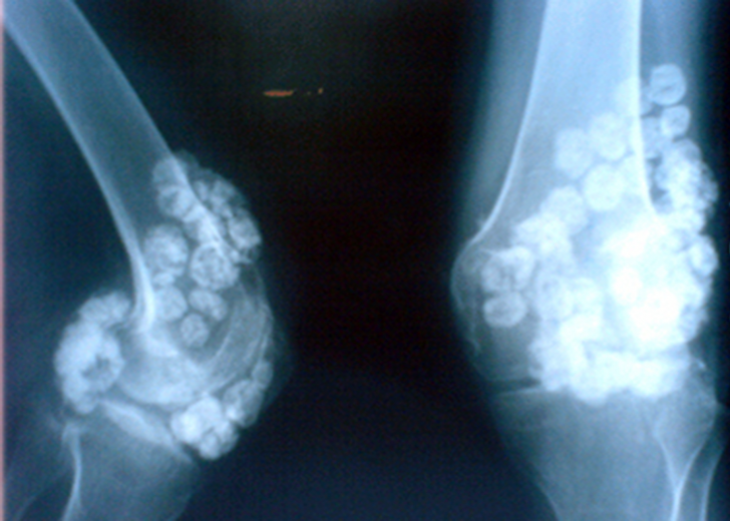 滑膜软骨瘤病是一种关节骨膜自限性增殖性的良性疾病,由滑膜内层结缔组织增生并化生成多数软骨结节,钙化、骨化而脱离滑膜,进入关节腔,形成大量游离小体。该病好发年龄为30~50岁,男性多于女...