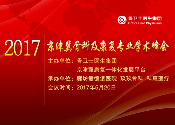 2017京津冀骨科及康复专业学术峰会邀请函尊敬的各位同仁:大家好!为进一步加强京津冀骨科及康复专业的发展,促进学术届的交流合作,以适应新形势下的医疗、保健要求,骨卫士医生集团与京津冀康...