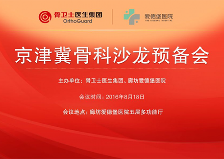 2016年8月18日,骨卫士医生集团与廊坊爱德堡医院共同举办京津冀骨科沙龙预备会。会议围绕关节疾病的现代外科治疗、脊柱外科治疗、椎间孔镜治疗、关节置换等问题进行专题研讨。会议邀请了在本领域...