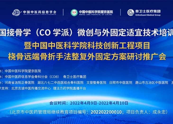 4月9日-10日,北京市中医药管理局继续教育项目中国接骨学(CO学派)微创与外固定适宜技术培训班(2022年第1期)暨中国中医科学院科技创新工程项目桡骨远端骨折手法整复外固定方案研讨推广会以...