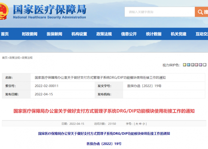 近日,国家医保局发布《关于做好支付方式管理子系统DRG/DIP功能模块使用衔接工作的通知》,通知指出,2022年6月底前,选择部分新开展DRG/DIP支付方式改革地区,试用全国统一医保信息...