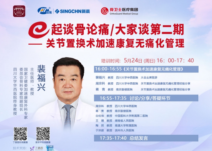 专家培训|裴福兴教授《e起谈骨论痛/大家谈第二期——关节置换术加速康复无痛化管理》骨卫士5月24日骨卫士昨天为了更好地落实国家卫生健康委关于开展加速康复外科试点工作的通知(国卫办医函〔20...