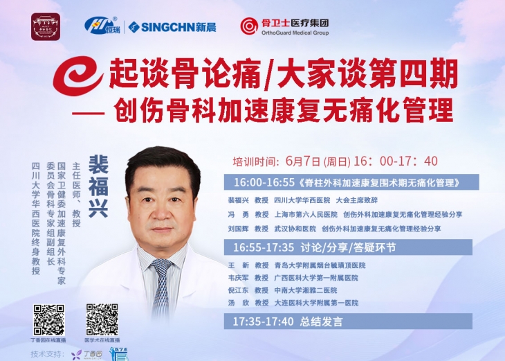 专家培训|裴福兴教授《e起谈骨论痛/大家谈第一期——骨科加速康复围术期无痛化管理》骨卫士5月17日骨卫士昨天为了更好地落实国家卫生健康委关于开展加速康复外科试点工作的通知(国卫办医函〔20...