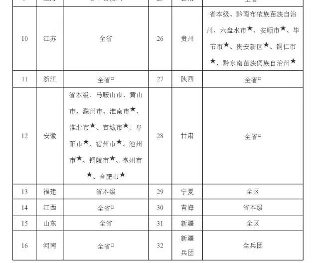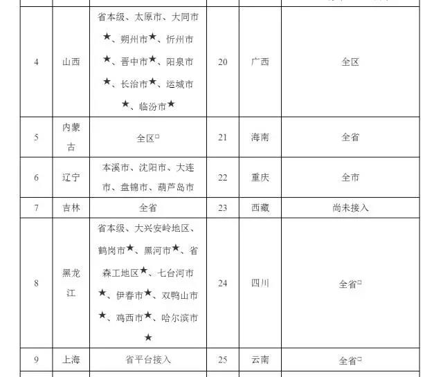 2.带□的已开通省份,指第二期发布与首期发布的新增全省接入省份。