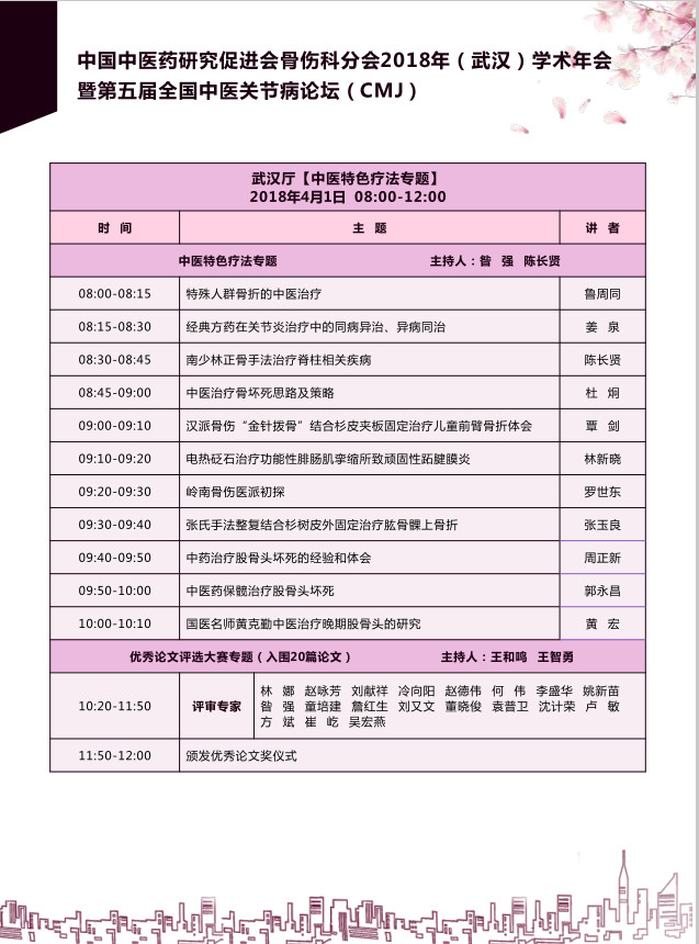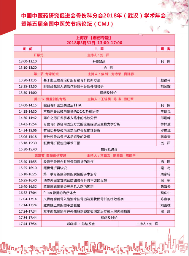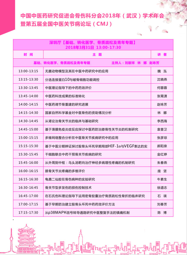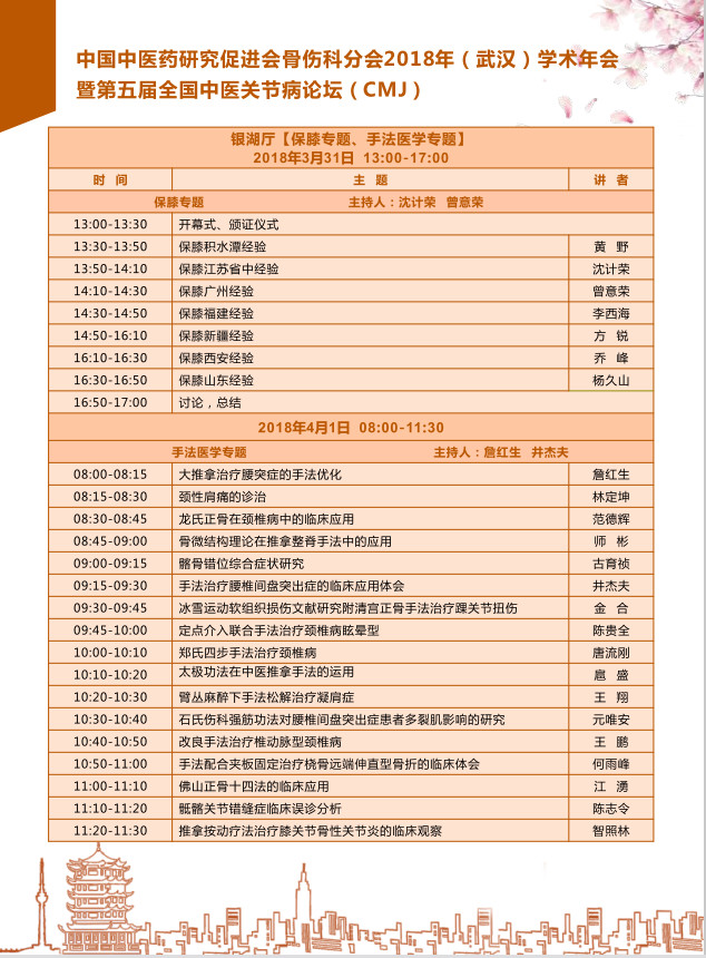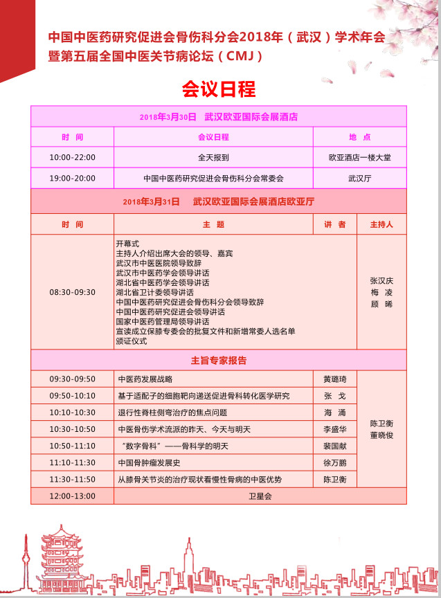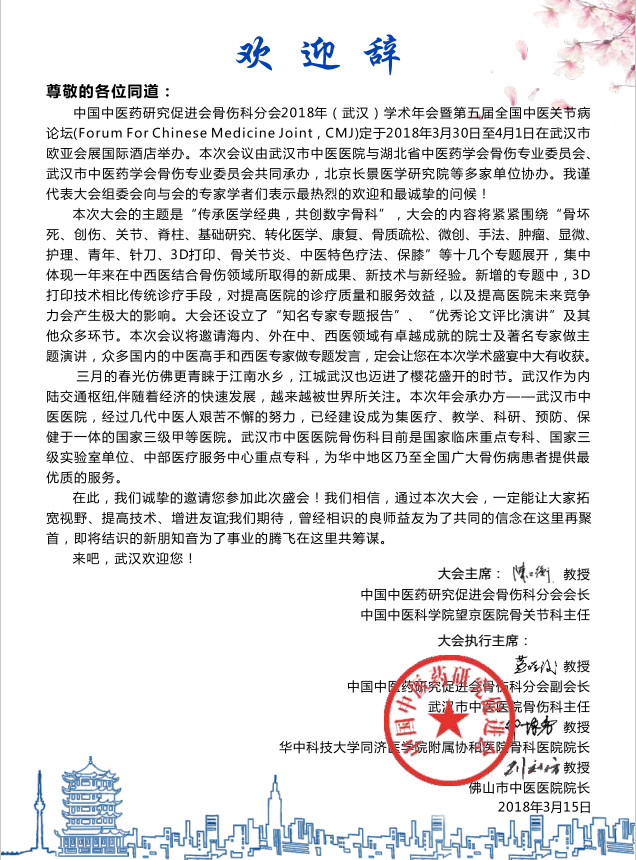 2018年3月30日中国中医药研究促进会骨伤科分会于湖北武汉举办2018年学术年会暨第五届全国中医关节病论坛,