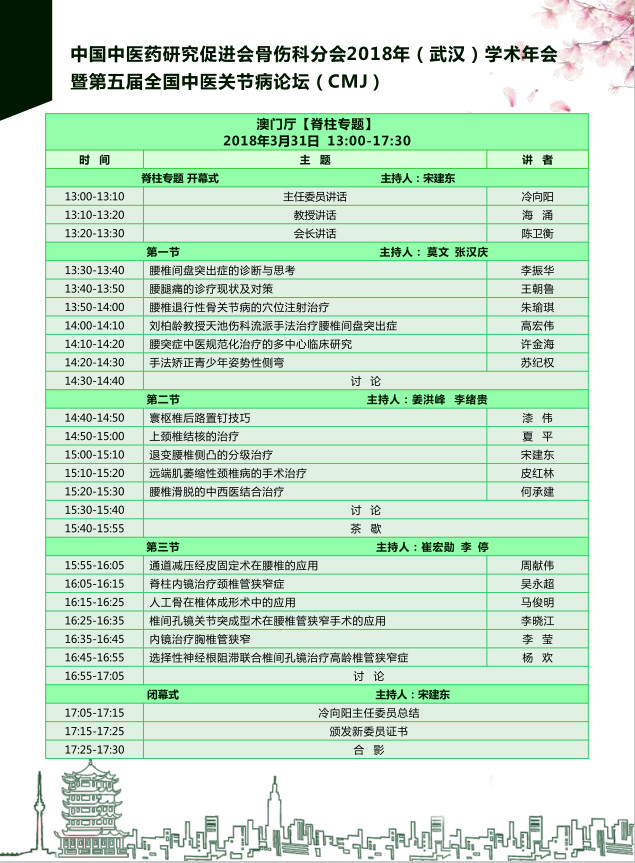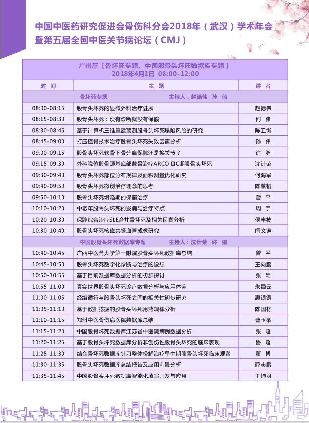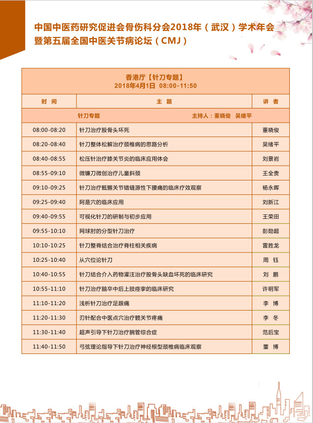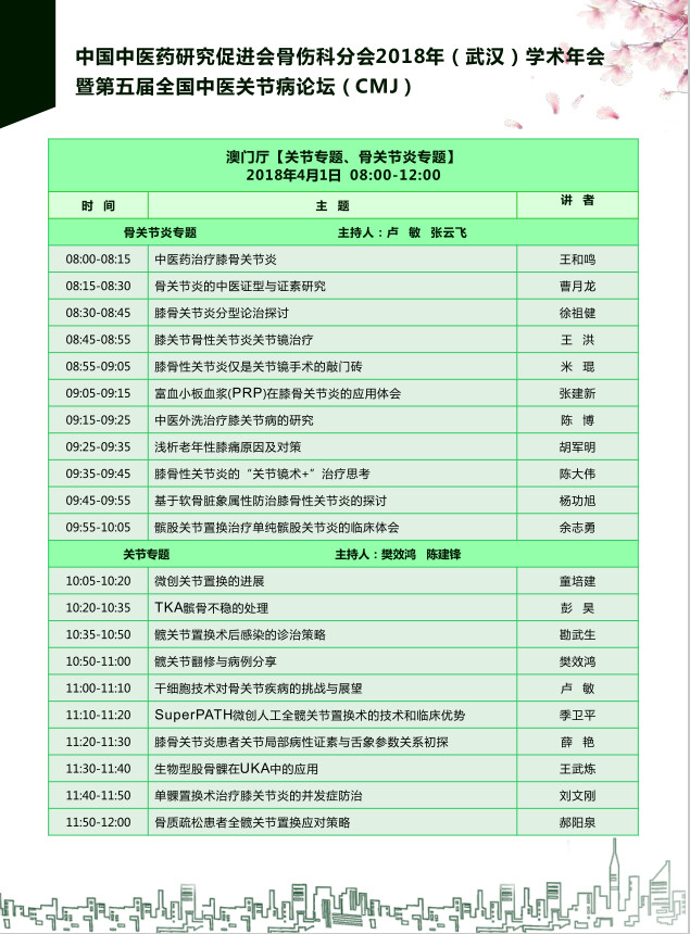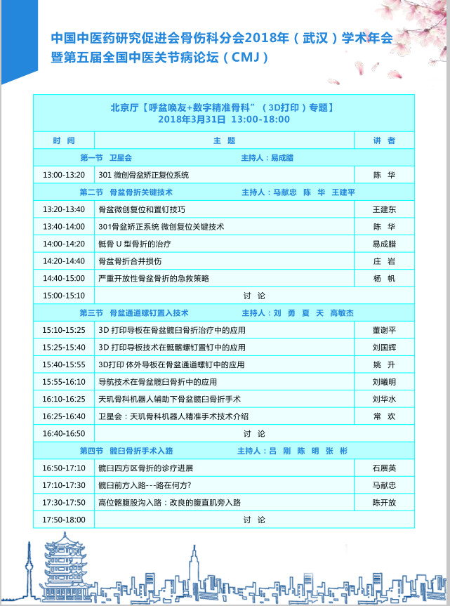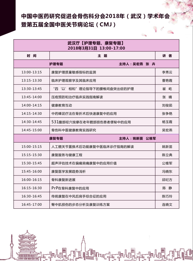 2018年3月30日中国中医药研究促进会骨伤科分会于湖北武汉举办2018年学术年会暨第五届全国中医关节病论坛,