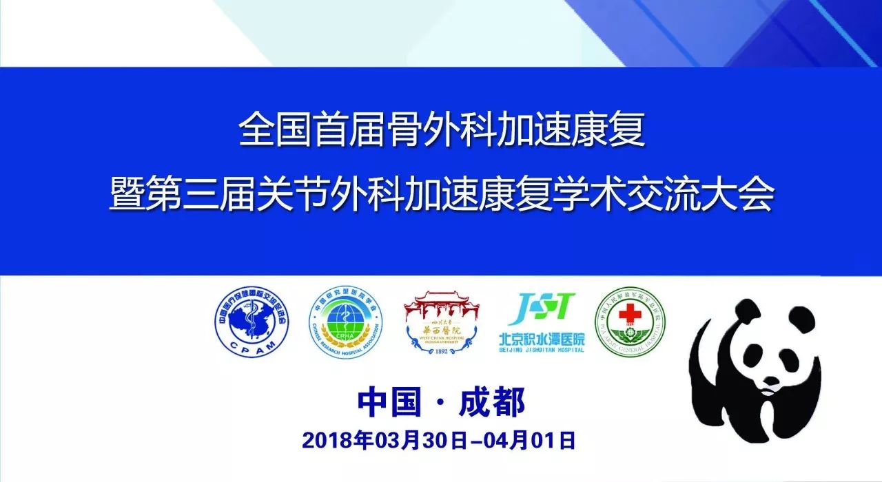 随着加速康复外科(Enhanced recovery after surgery, ERAS)在我国蓬勃开展,骨科手术安全性和治疗效果得到进一步提高,围术期管理逐步实现无血、无痛、无应激、无风险和无感、无栓、无管、无吐、无带的加速康复,缩短住院日、降低医疗费用、减少并发症,改善患者体验和提高满意度。国家卫生行业科研专项《关节置换术有效性与安全性评价》项目组分别于2016和2017年在成都举办“首届和第二届全国关节置换术加速康复与围术期管理专题研讨会”,受到了与会专家和参会人员的青睐,推动了中国骨科加速康复的发展。